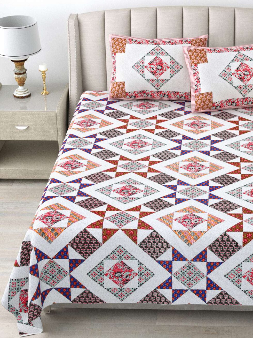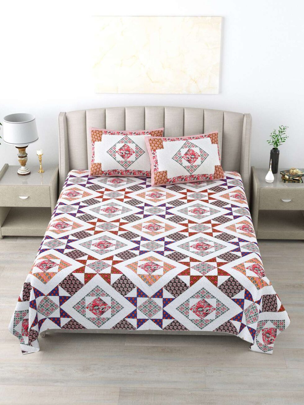 100% Pure Cotton Traditional Printed Bedsheet for Double Bed King Size Bedsheet with 2 Pillow Covers
