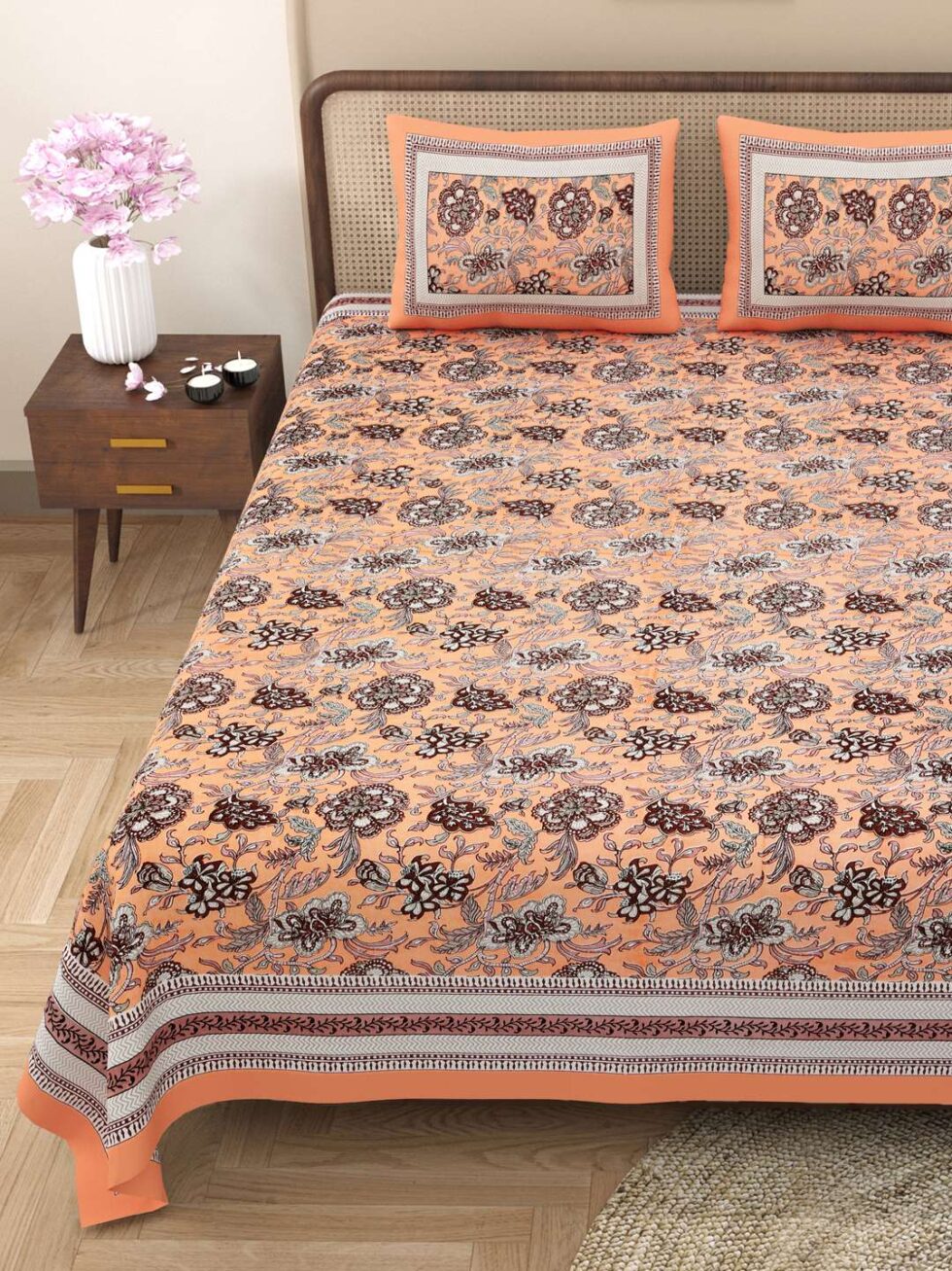 100% Pure Cotton Traditional Printed Bedsheet for Double Bed King Size Bedsheet with 2 Pillow Covers